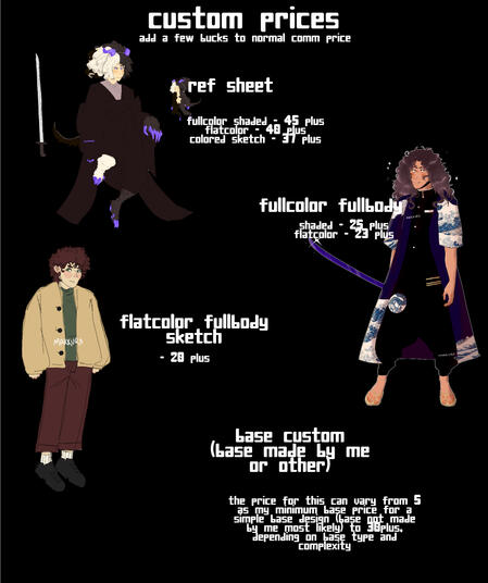 -Am allowed to post the completed piece(s) on any of my social medias-have the right to turn down your commission (or drop it when i cannot complete it, refunds will be given)